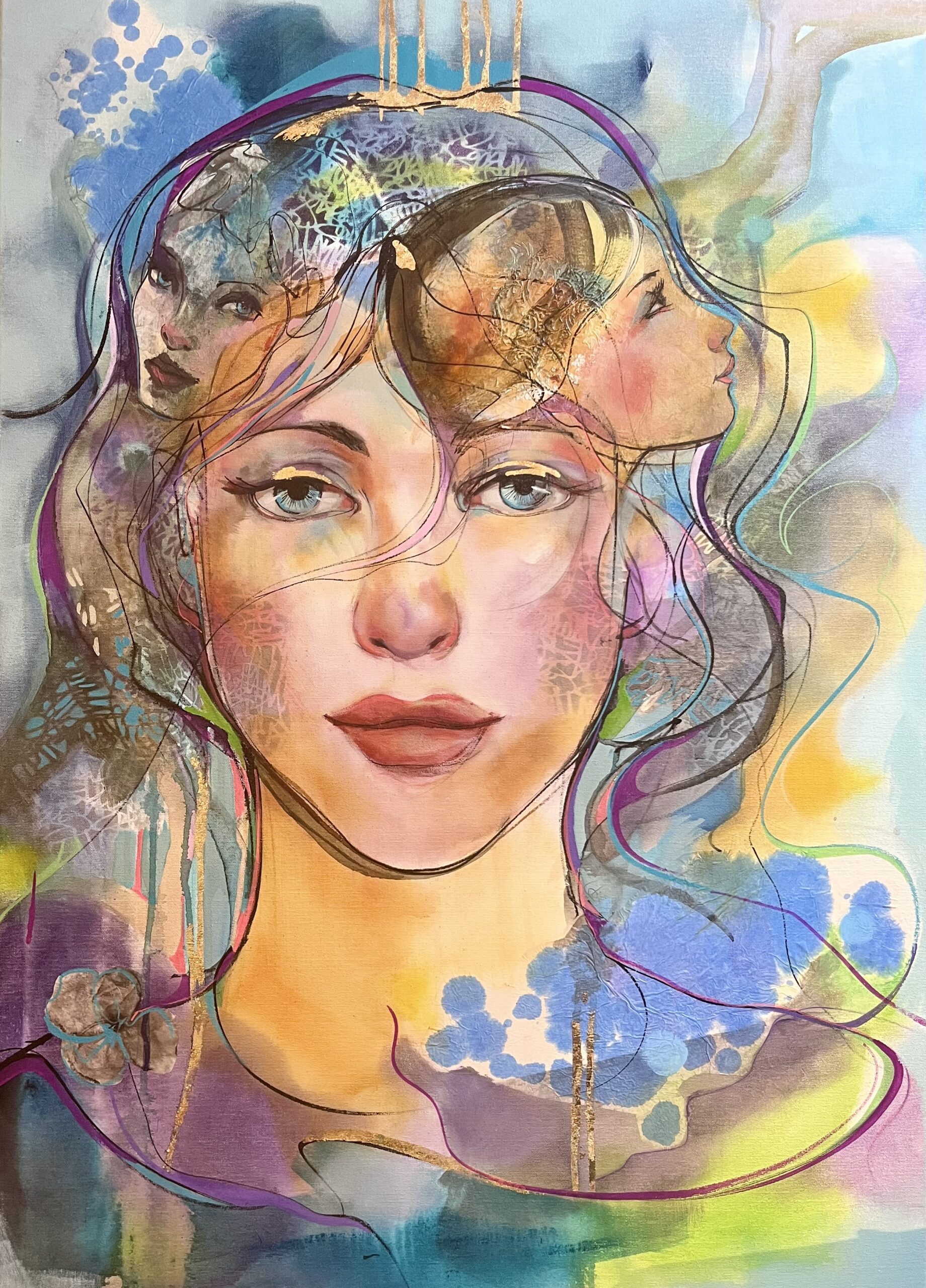“Golden Intention” is one of the originales in the series “Good Fortune”. 70x100cm -acrylic on canvas