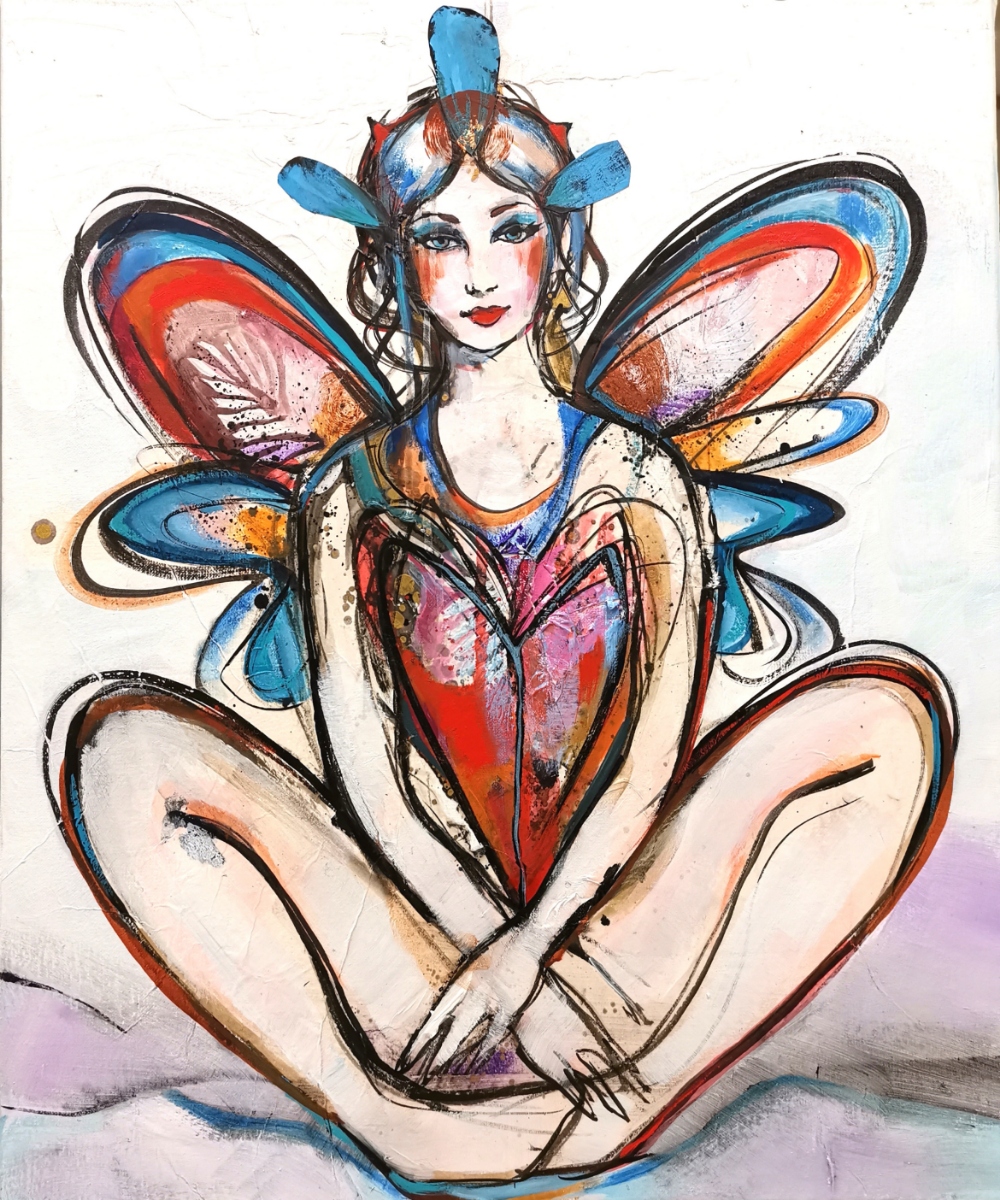 Original blekk og akryl på linlerret 56×65 cm Original ink and acrylic on linen 56×65 cm