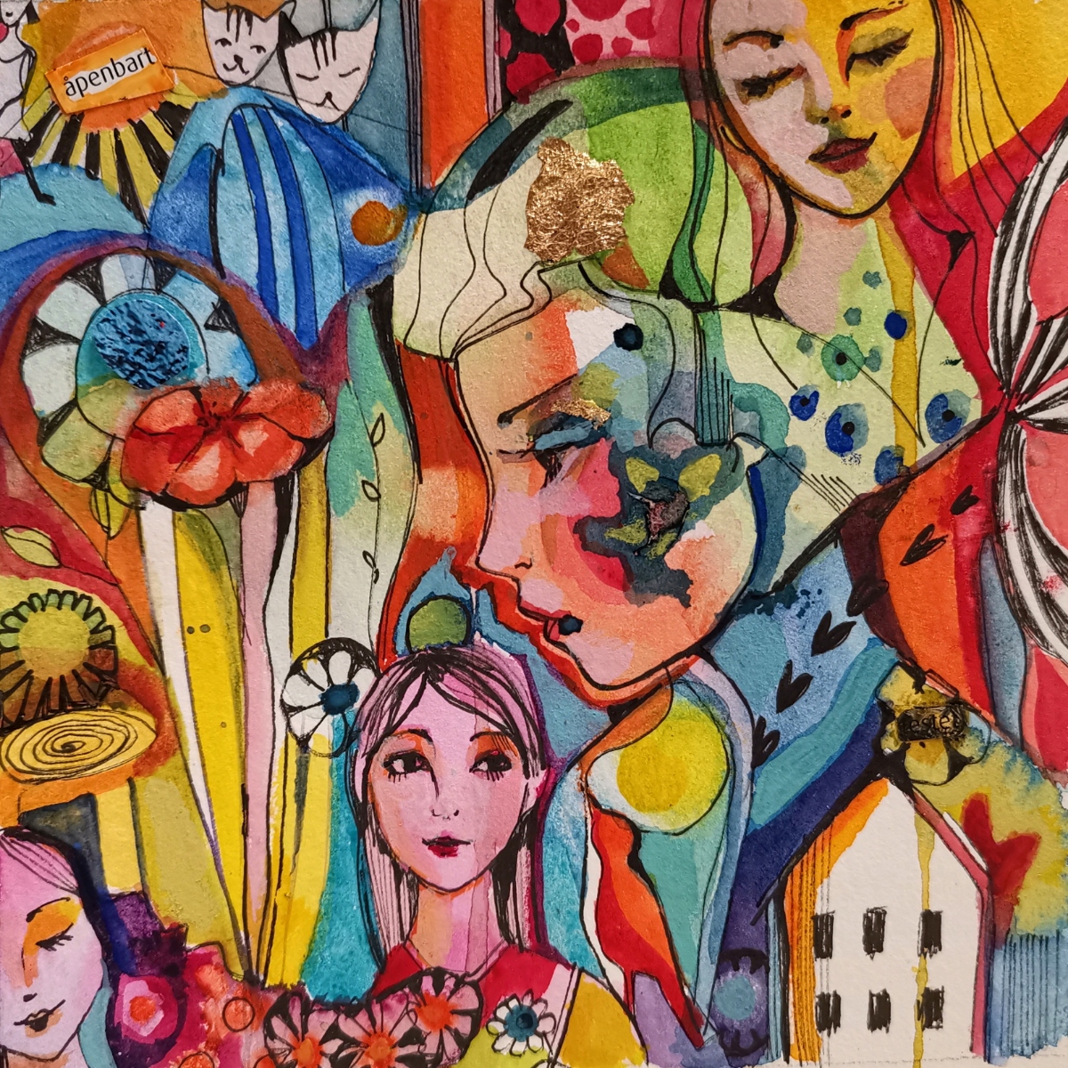 Original ‘colour story’ innrammet billedstørrelse 15x15cm,ytre 20x20cm Original ‘colour story’ framed, picture size 15x15cm, with frame 20x20cm