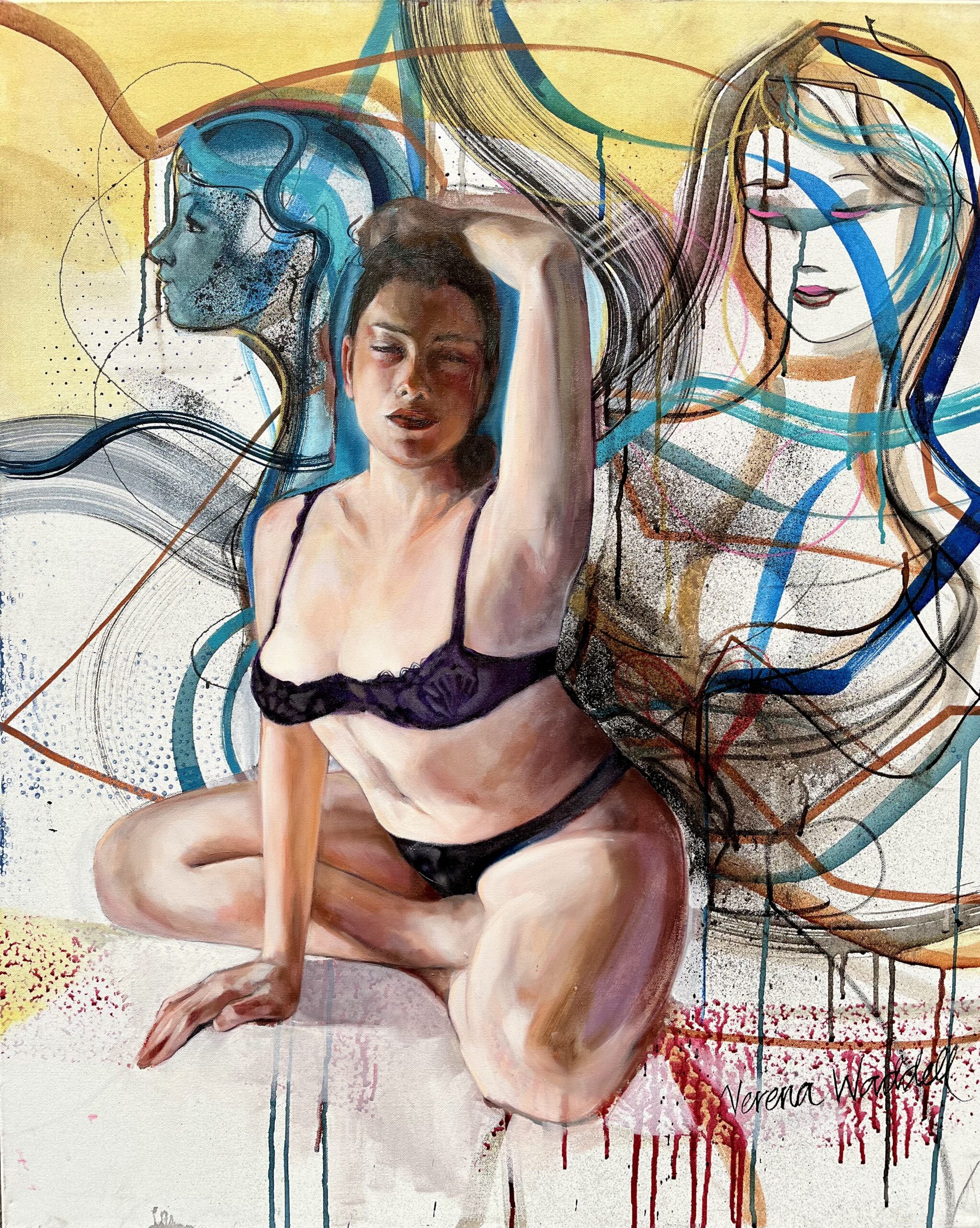 Ta Plass er endel av serien “Ta Plass”-originalen måler 80×100 cm og er en fusjon av energisk blekk, symbolikk og figurativ utfoldelse