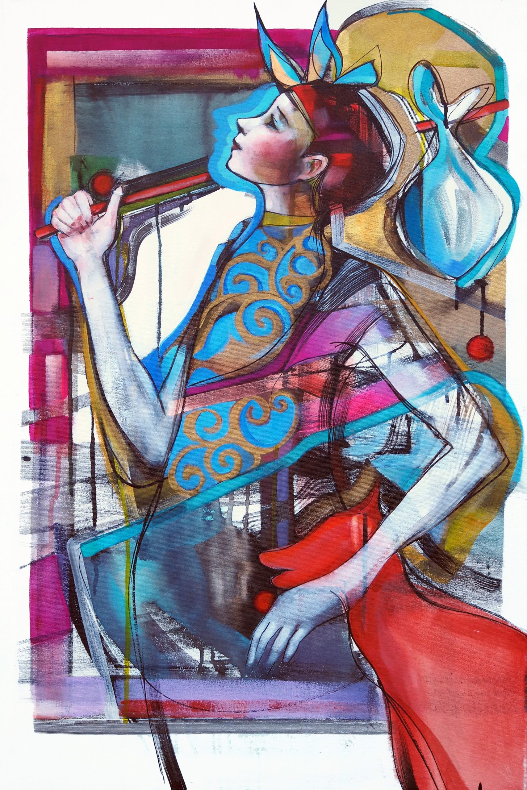 The Fool (Narren),del av 22 bilder malt inspirert av Major Arcana En lys reise, der hvert bilde er tolket fritt og inviterer deg til egen reise og refleksjon, måler A 3 uten ramme og 45 x 65 inkludert ramme, pris er uten ramme. Trykket har opplag på 120 The Fool, part of 22 paintings painted inspired by Major Arcana A bright journey, where each image is interpreted freely and invites you to your own journey and reflection, measures A 3 without frame and 45 x 65 including frame, price is without frame. The print is in edition of 120